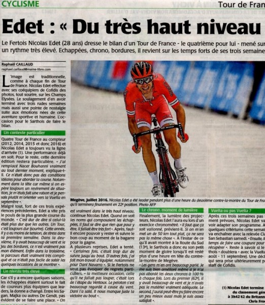 - Appelé de dernière minute, Nicolas termine son 4ème Tour de France à 106ème place !