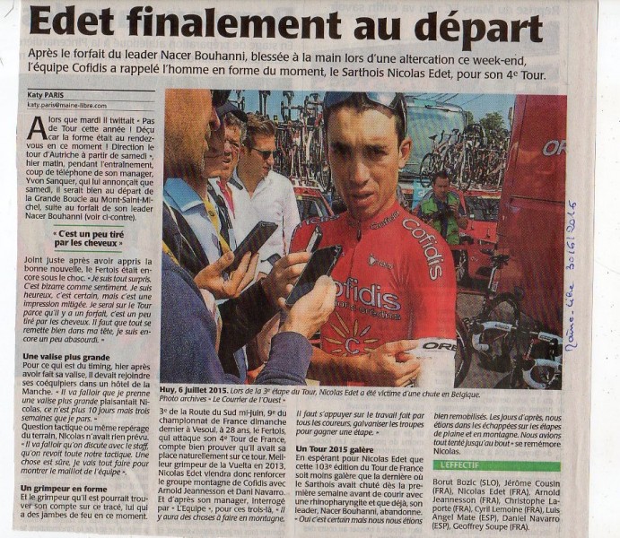 - Nicolas remplace Nacer Bouhanni et participera au Tour 2016 !