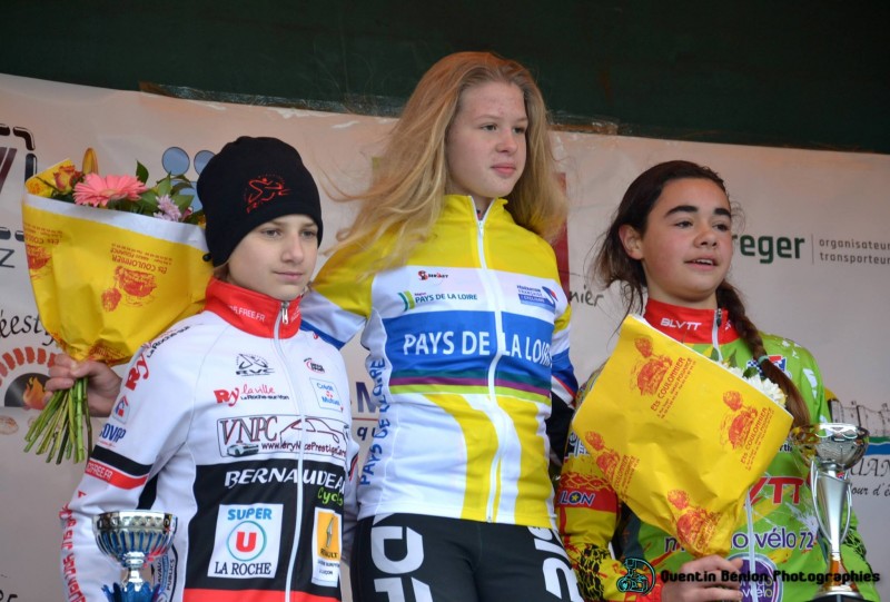 Chez les minimes dames, Valentine Houdin (UC Sud 53) s'impose devant Flavie Boulais (La Roche-sur-Yon Vendée Cyclisme) et Bénédicte Ollier (Brûlon Loisirs VTT Nature).