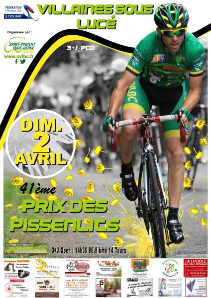 Saint-Vincent Lucé Bercé Cycliste organise le dimanche 2 avril le traditionnel Prix des Pissenlits, épreuve ouverte aux 3èmes catégories, juniors et pass'cyclisme open.