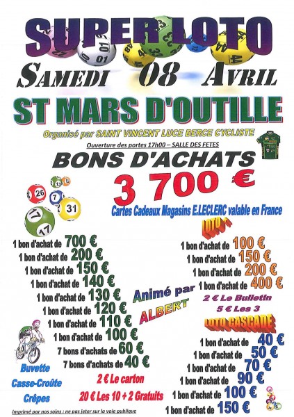 Notez également le loto du club le samedi 8 avril à Saint-Mars-d'Outillé.