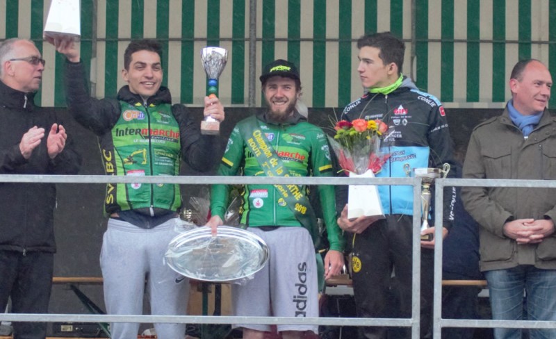 Podium départemental des 2èmes catégories : 2ème Guillaume Pouget (SVLBC), 1er Célestin Guillon (SVLBC), 3ème Florian Guéranger (VCC)