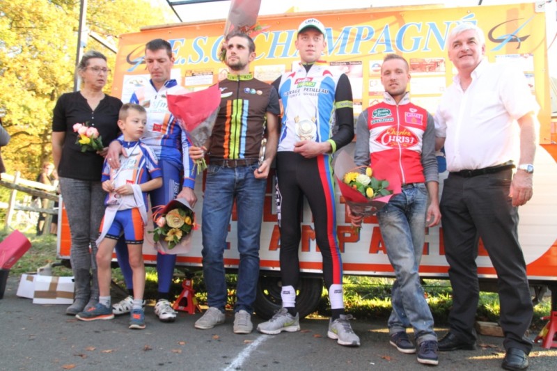 Voici les résultats du cyclo-cross de Champagné organisé ce dimanche par l'ESC Champagné. Chez les espoirs-seniors, Benjamin Bouttier (Patriote de Bonnétable) l'emporte devant Perrick Valomet (AC Vallée de la Sarthe) et Alexis Teillet (VS St Michel Charles Christ). Les manceaux Clément Deret-Langlais et Julien Desgrouas l'emporte respectivement chez les cadets et les juniors.
