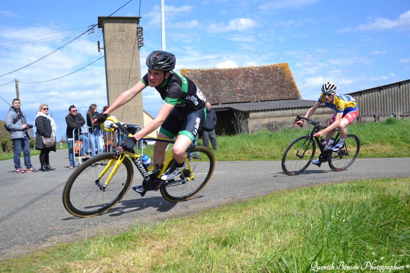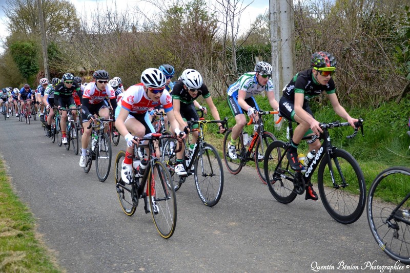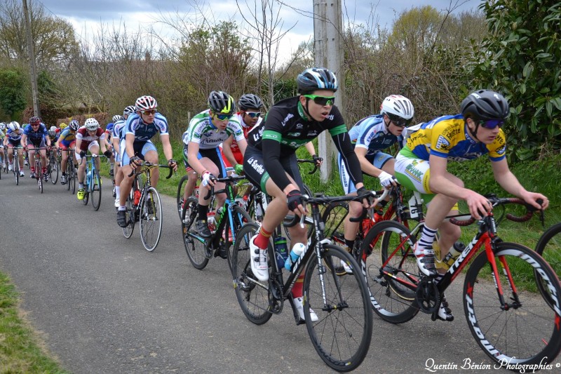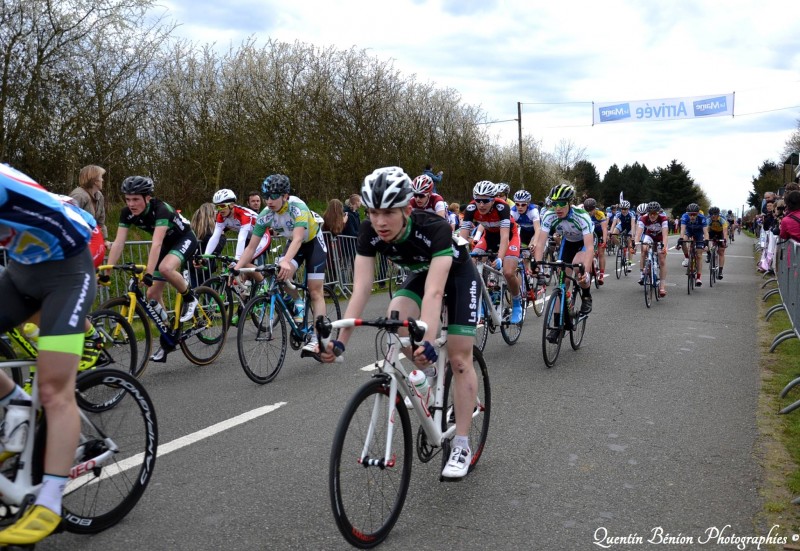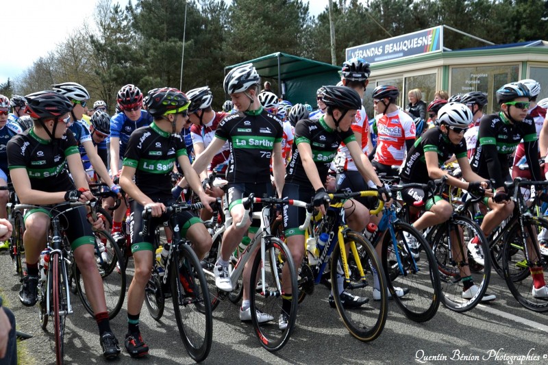Julien n’était pas dans son meilleur jour sur un circuit qui ne lui avait déjà pas trop réussi l’an dernier lors du Cht de la Sarthe. Durant la 2ème partie de la course, Julien a été régulièrement décroché dans la côte des Véneray. Handicapé par une douleur au genou due à sa croissance, Julien était contraint à mette un petit braquet dans la côte et se faisait lâché. Courageux, Il revenait à chaque tour sur le plat, où il paraissait plus à l’aise mais aussi grâce aux ralentissements du peloton. Il faudra suivre l’évolution de son genou car Julien vaut beaucoup plus que cela lorsqu’il a tous ses moyens. Julien n’a rien lâché et à tout de même terminé dans le peloton |