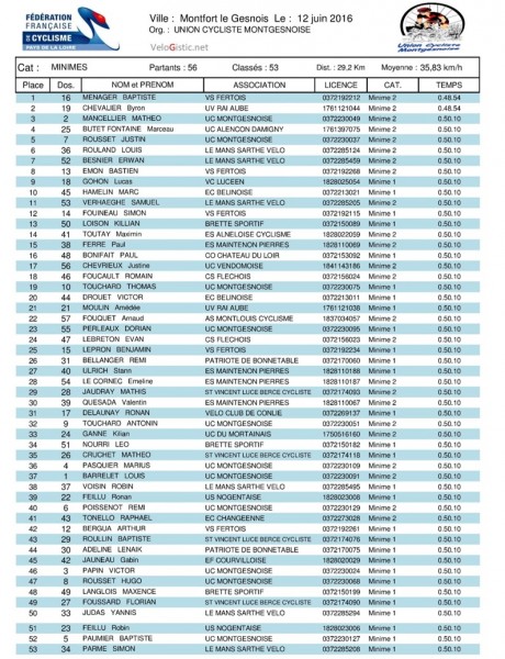 Montfort-le-Gesnois - minimes-cadets - dimanche 12 juin - victoires de Baptiste Ménager (VS Fertois) et Hugo Page (ES Alneloise)