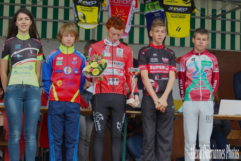 Ce dimanche, l'UC Montgesnoise organisait à Montfort-le-Gesnois la 4ème et dernière manche du challenge Benoit Jarrier - Nicolas Edet. Chez les minimes, le leader du challenge Baptiste Ménager (VS Fertois) l'emporte en solitaire devant Byron Chevalier (UV Rai Aube) et Mathéo Mancellier (UC Montgesnoise). Chez les cadets, l'Eurélien Hugo Page (ES Alneloise) vainqueur de la 1ère manche à Beillé l'emporte également en solitaire. Quentin Drevet (Vineuil Sports) et Josselin Cabaret (AC Belmontaise) complètent le podium tandis que Julien Launay (VS Fertois), 26ème, remporte le challenge.