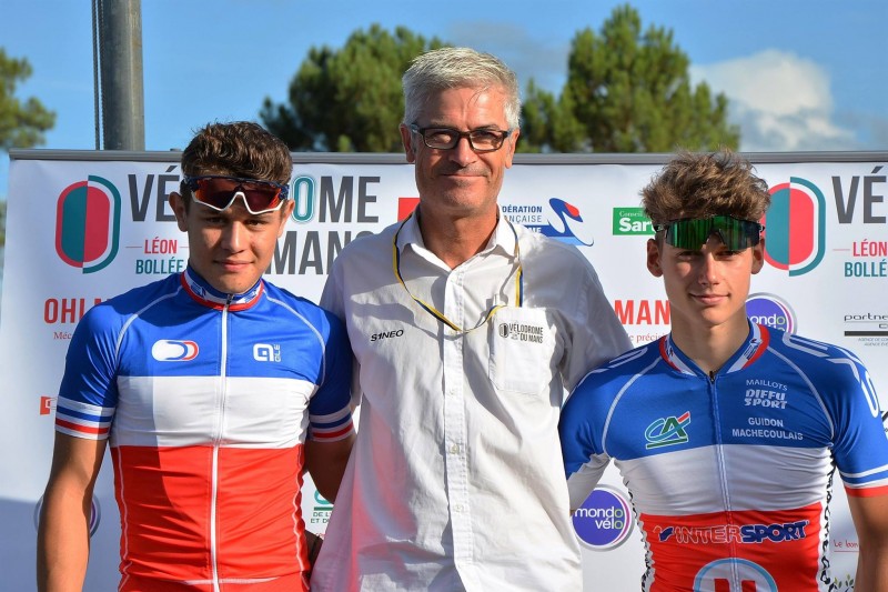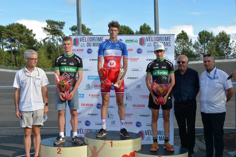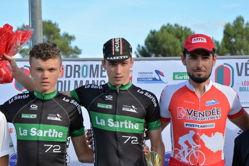 podium de la finale : 2ème Julien Fraudeau (UV Le Neubourg), 1er Théo Ratichaux (CD44), 3ème Dorian Perleaux