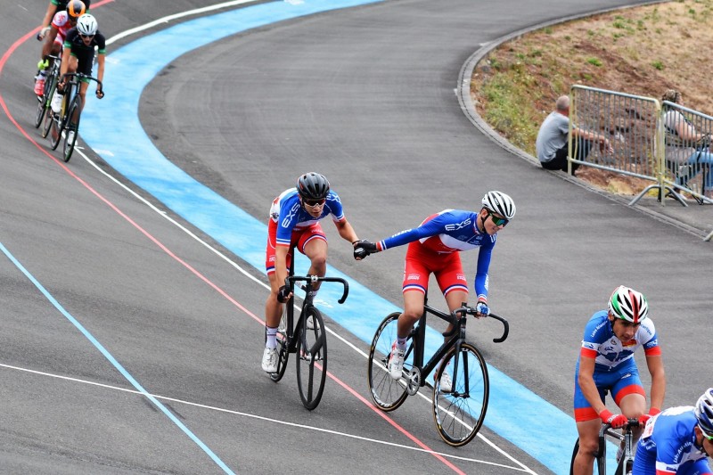 | Les cadets au départ à la balustrade | Stéphane Merrien entouré des champions de France de l'Américaine Bouvier et Thibaud | La paire Ledreux-Biard 3ème de l'Américaine |
