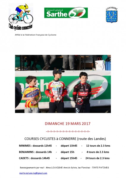 - Connerré (CCC) : benjamins-minimes-cadets, circuit de 2,3km :
