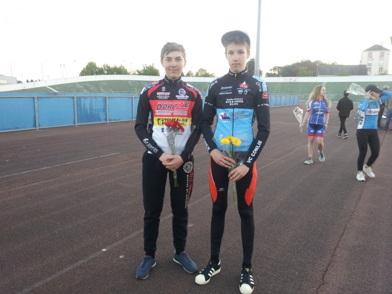 Angers (49) - 1ère manche des mercredis de la piste - mercredi 12 avril - victoires de Maxime Loiseau (Brette Sportif) et François Biard (AC Belmontaise)