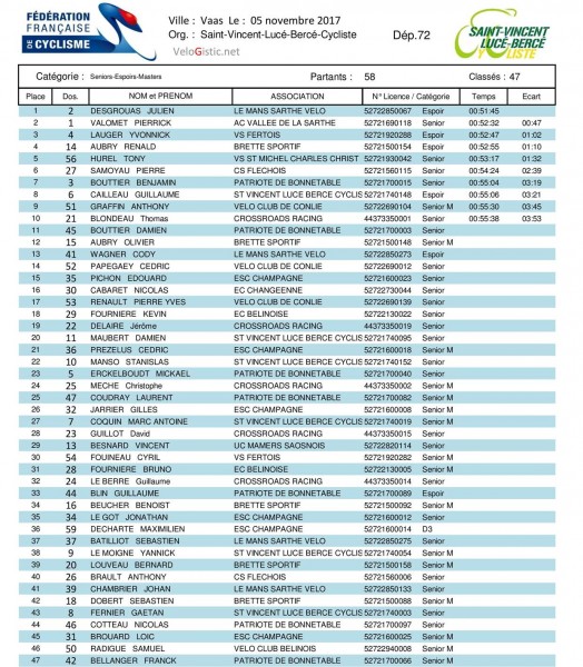 Julien Desgrouas (Le Mans Sarthe Vélo) a remporté ce dimanche à Vaas le 1er Prix du Védaquais, support du championnat de la Sarthe de cyclo-cross organisé par Saint-Vincent Lucé Bercé Cycliste. Le Manceau conserve ainsi le titre de champion de la Sarthe Espoir et devance Pierrick Valomet qui lui conserve le titre seniors. L'espoir du VS Fertois Yvonnick Lauger est 3ème, Reynald Aubry (Brette Sportif) est 4ème et 3ème Espoir tandis que Tony Hurel (Direct Energie/VS St-Michel Charles Christ) et Pierre Samoyau (CS Fléchois), 5ème et 6ème complètent le podium senior. Chez les Masters (+40 ans), Anthony Graffin (VC Conlie) est 9ème et remporte le titre départemental devant le champion sortant Olivier Aubry (Brette Sportif), 9ème et Cédric Prézélus (ESC Champagné), 21ème.