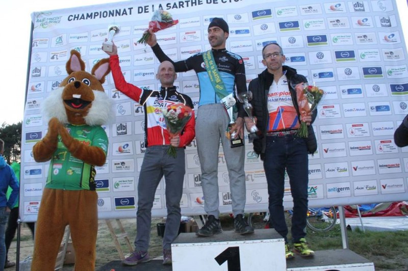 Le podium master : 2ème Olivier Aubry, Champion de la Sarthe : Anthony Graffin, 3ème Cédric Prézélus (représenté par G.Jarrier)