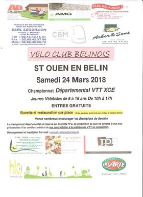 Le VC Bélinois organise le samedi 24 mars à Saint-Ouen-en-Belin une épreuve Kid's Trophy, support du championnat de la Sarthe de VTT XCE. Contact : Samuel Radigue (samuel.radigue@orange.fr).