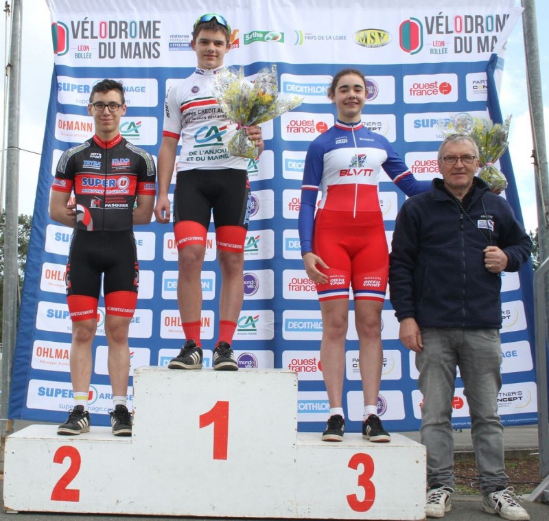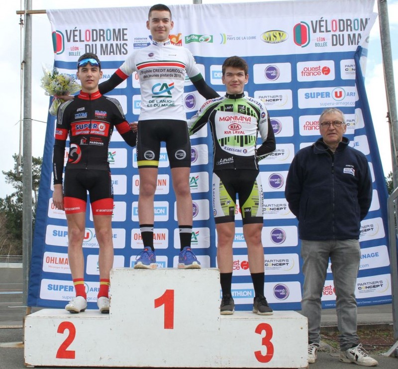 Adrien Fouqueray (Brette Sportif), Ludwig Quoniam (UC Montgesnoise) et Erwan Besnier (Le Mans Sarthe Vélo) ont remporté ce samedi sur le vélodrome Léon-Bollée du Mans la 1ère manche du Trophée Crédit Agricole des Jeunes Pistards.
