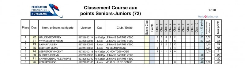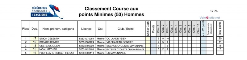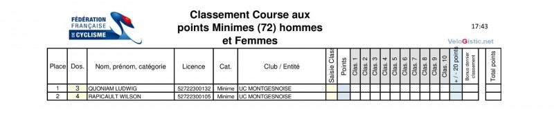 - Minimes : Ludwig Quoniam (UC Montgesnoise) - course aux points