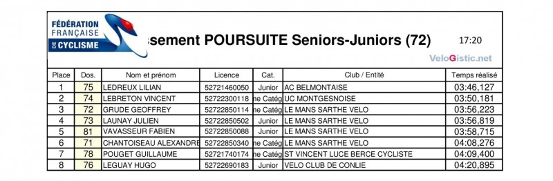 - Juniors-Seniors : Lilian Ledreux (AC Belmontaise) - poursuite et Geoffrey Grudé (MSV) - course aux points