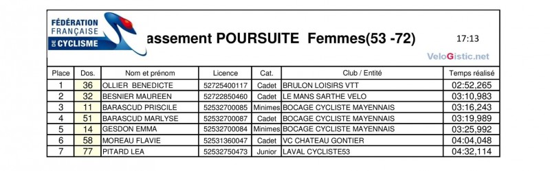 - Minimes-Cadettes : Priscille Barascud (BC Mayennais) - omnium (course aux points et poursuite)