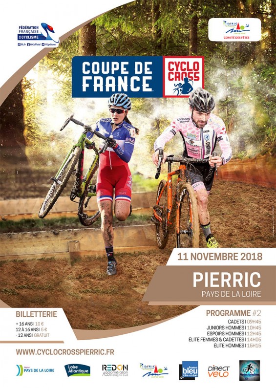 • Pierric (44) : 2ème manche de la Coupe de France de cyclo-cross, plus d'infos sur cyclocrosspierric.fr. 7 Sarthois sont engagés : les élites Pierre Samoyau (CSF) et Pierrick Valomet (SVLBC), les espoirs Yvonnick Lauger (VSF) et Simon Lepoittevin-Dubost (SSCPDL), le junior Baptiste Ménager (VSF) et les cadets Louison Le Barbier (UCM) et Killian Loison (SVLBC)
