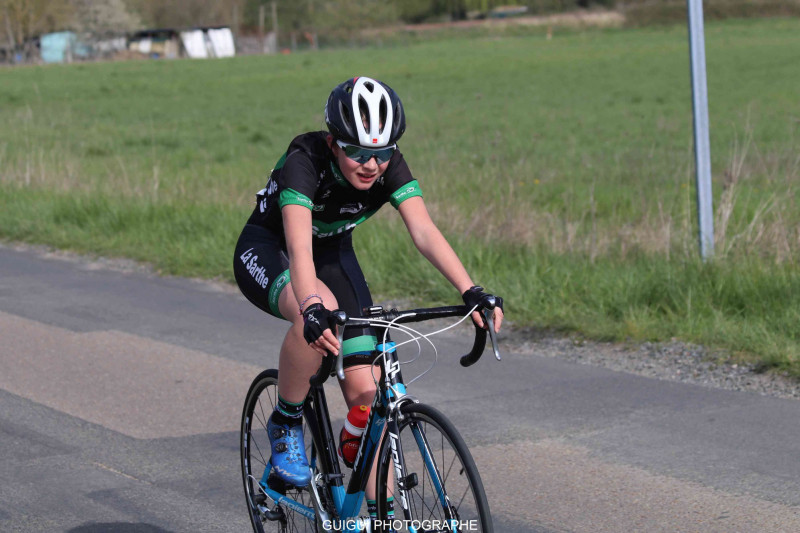 Assez vite, Léonie se retrouvait seule à l'arrière en raison du mauvais souvenir de sa chute lors de la manche précédente à Challans. Elle allait tout de même faire toute la course avec une régularité de métronome et méritait un immense bravo d'encouragement car sa course était aussi bien difficile physiquement que mentalement.