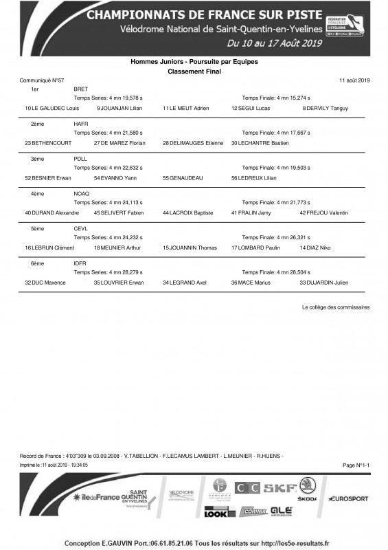 Erwan Besnier et ses co-équipier du comité régional des Pays-de-la-Loire ont décroché ce dimanche la médaille de bronze sur la poursuite par équipes. Ils ont battu en petite finale le comité de Nouvelle Aquitaine.