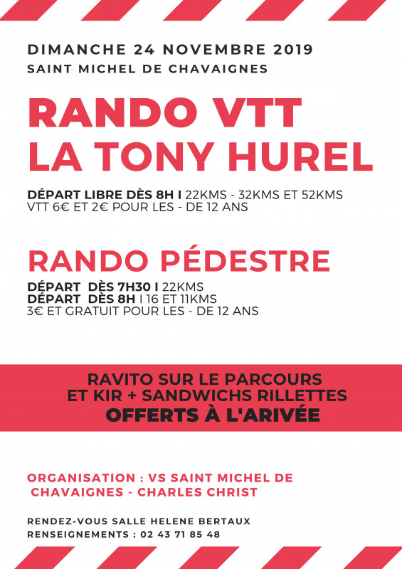 Le VS St-Michel Charles Christ organise le dimanche 24 novembre à Saint-Michel-de-Chavaignes la randonnée VTT et pédestre la Tony Hurel.