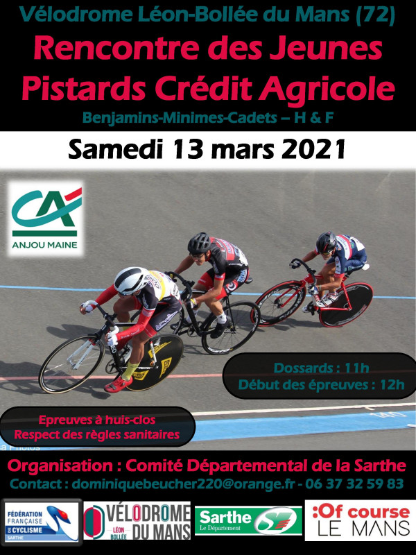 Le comité départemental organise le samedi 13 mars la 1ère rencontre des Jeunes Pistards Crédit Agricole ouvertes aux benjamins, minimes et cadets, garçons et filles.