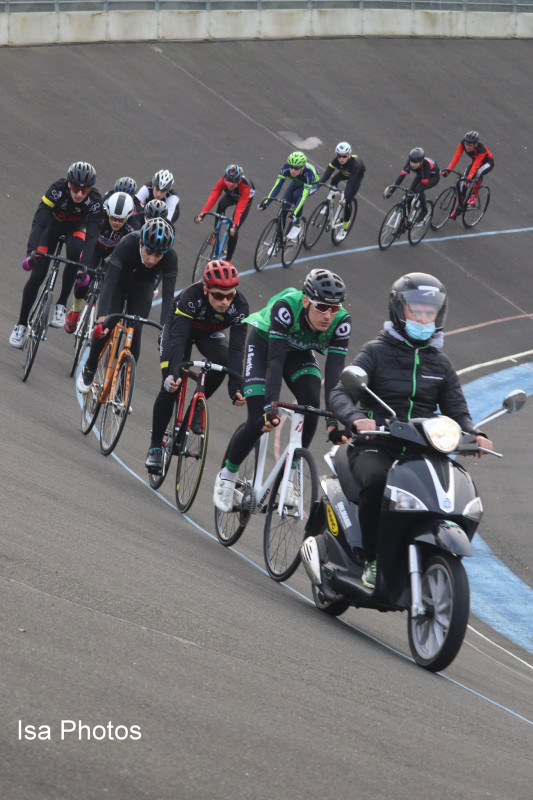Ensuite tous les stagiaires ont pu rouler en groupe de niveau (exercices d’appropriation de la piste) puis mini épreuves (courses scratch, éliminations, courses handicap, 200 ML, poursuites par équipes etc..)