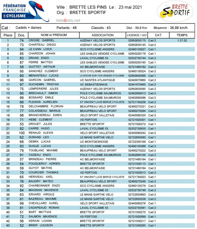 Nathan Duchemin (VC Sébastiennais) et Gabriel Croisé (Aizenay VS) ont remporté ce dimanche les épreuves minimes et cadets du GP Gustave Hauvieux organisées par Brette Sportif.