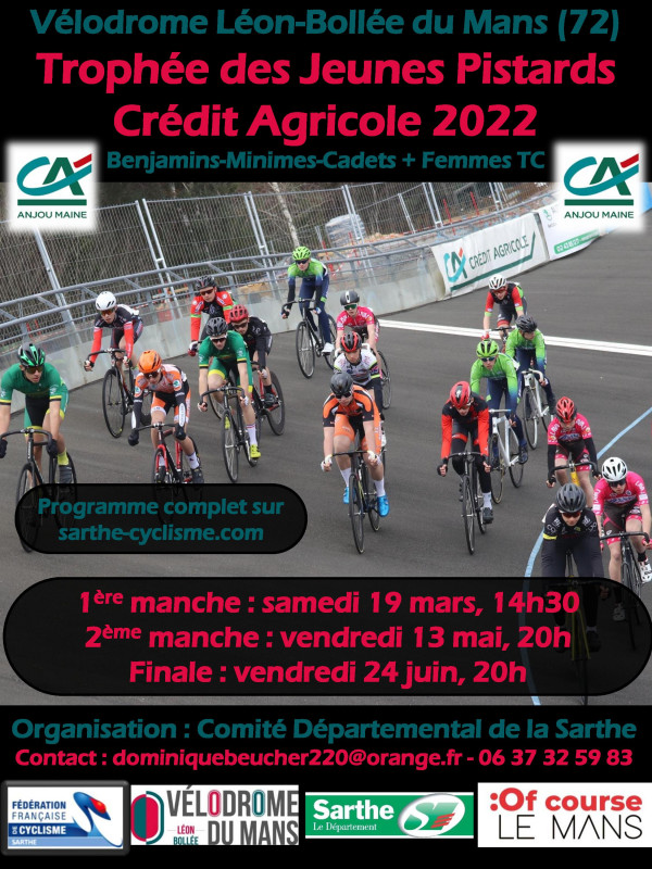 Le Trophée des Jeunes Pistards 2022 se déroulera commes les saisons précédentes sur 2 manches et 1 finale. Elle se dérouleront les samedi 19 mars et vendredis 13 mai et 24 juin. Début des épreuves à 14h30 le samedi et à 20h les vendredis. Les épreuves sont ouvertes aux benjamins (avec vélos de route), minimes et cadets (avec vélos de piste).