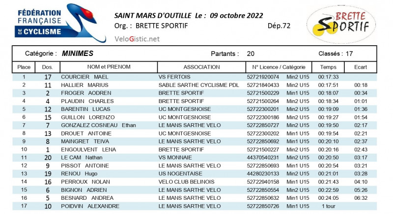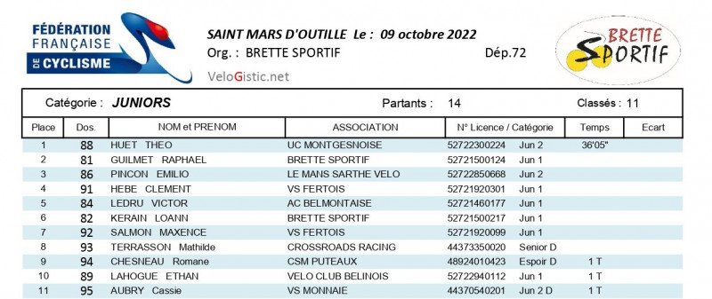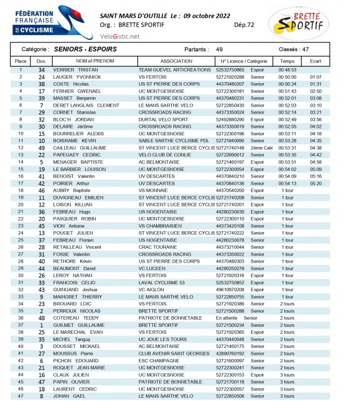 Tristan Verrier (Team Guevel Articréations) a remporté ce dimanche le cyclo-cross de Saint-Mars-d'Outillé organisé par Brette Sportif. Le champion de la Sarthe Yvonnick Lauger (VS Fertois) et Nicolas Coste (US St-Pierre des Corps) complètent le podium.