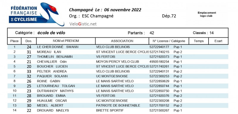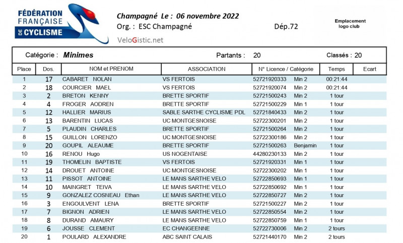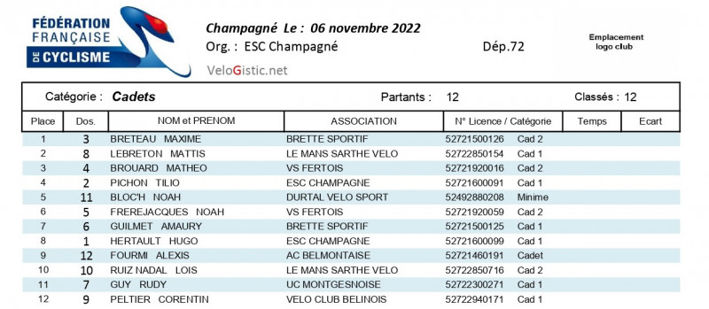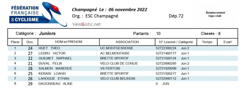 Yvonnick Lauger (VS Fertois) a remporté ce dimanche le cyclo-cross de Champagné organisé par l'ESC Champagné. Le champion de la Sarthe a devancé son co-équipier junior Thomas Courcier et Gwenaël Fernier (UC Montgesnoise).
