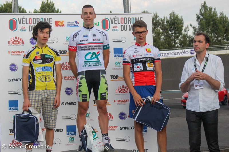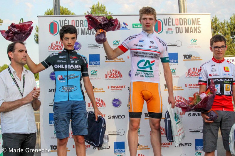 Sur le Trophée Crédit Agricole des jeunes pistards, en minimes, Lilian Ledreux (Free Wheels 72) a confirmé sa supériorité sur ce Trophée en remportant à nouveau le classement général de la journée. Il s'adjuge l'édition 2015 devant deux autres Sarthois François Biard (VC Conlie) et Fabien Vavasseur (Le Mans SV). Chez les cadets, c'est le Mayennais Bastien Podraza (Laval Cyclisme 53) qui réalise la bonne opération en faisant coup double. Il remporte le classement de la journée et par la même occasion, détrône Quentin Bertrand (Le Mans SV) de la place de leader. Il décroche la victoire au classement général de ce Trophée Crédit Agricole des jeunes pistards sur le fil. La 3ème marche du podium est occupée par le Champion régional sur route, le vendéen Martin Beaussire (La Roche Vendée Cyclisme).
