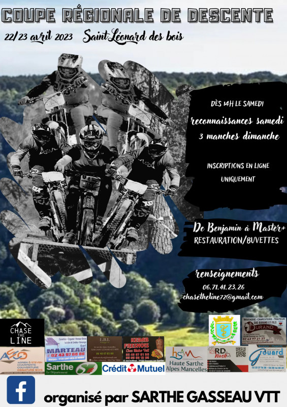Sarthe Gasseau organise les 22 et 23 avril une manche de la Coupe régionale de VTT Descente.