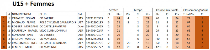 Chez les Femmes, la senior Morgane Robert (CC Castelbriantais) et la U17 Ines Pasgrimaud (CC Castelbriantais) remporte le classement général de la Coupe régionale de leur catégorie.