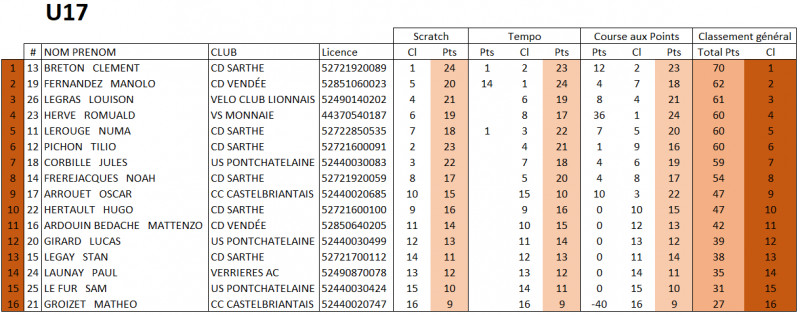 Chez les U19 et Seniors, on a assisté à un doublé d'anciens Sarthois avec la victoire d'Erwan Besnier (OC Locminé) et Dorian Perleaux (UC Cholet 49). Antoine Ferdinand (CS Mainvilliers) remporte leclassement final de la Coupe régionale.