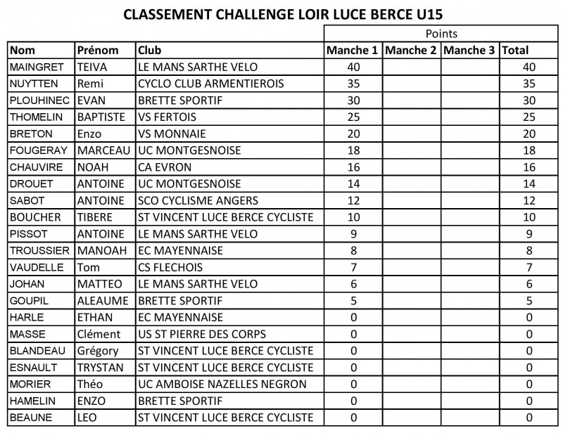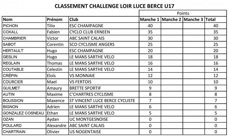 Saint-Vincent LBC organise ce dimanche le Prix de la Municipalité de Saint-Vincent-du-Lorouër avec des épreuves U13, U15 et U17. Vous retrouverez ci-dessous les classement du challenge Loir-Lucé-Bercé U15-U17 après la 1ère manche de Villaines-sous-Lucé.