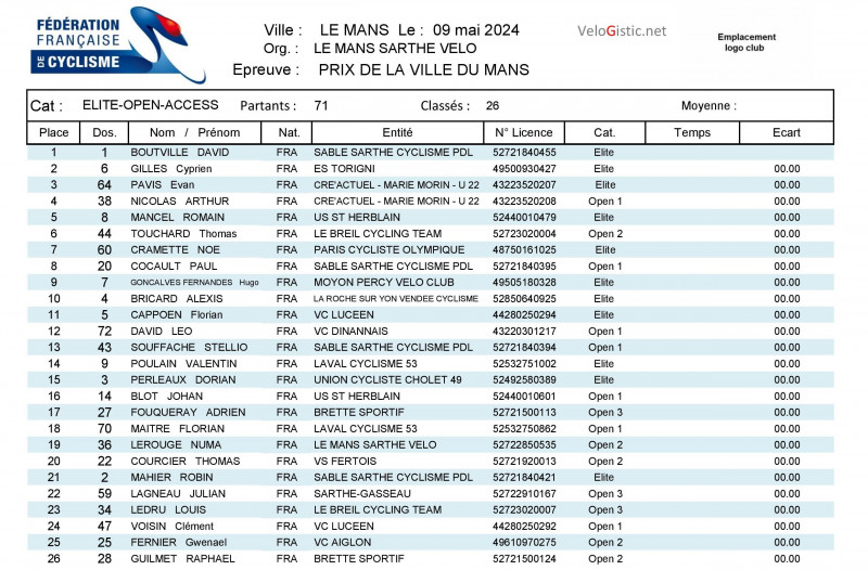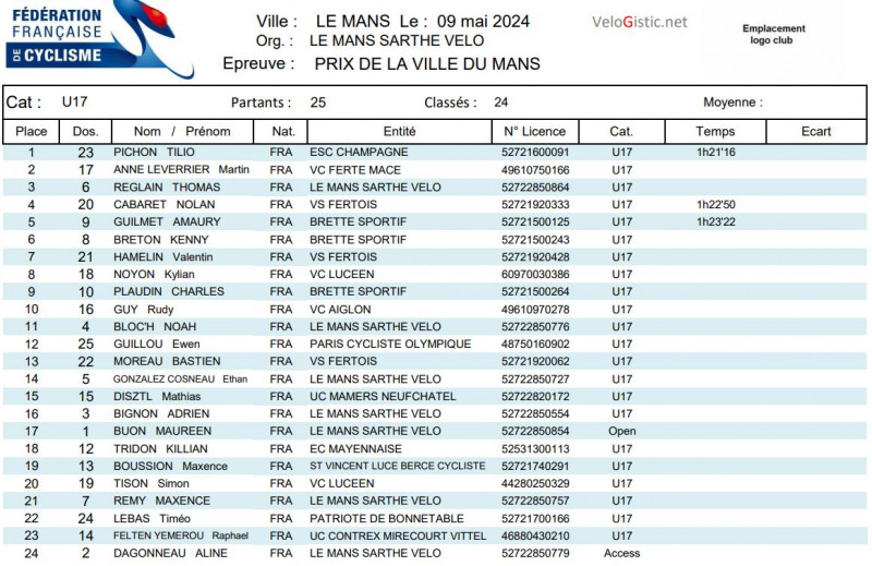 Critérium du Mans - jeudi 9 mai - Elite-Open-Access - U15/U17 - victoires de David Boutville (SSC), Aodren Froger (BS) et Tilio Pichon (ESCC)