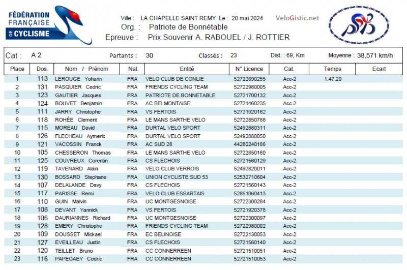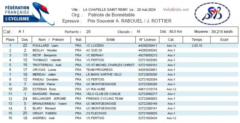 La Chapelle-Saint-Rémy - Championnat départemental Access - lundi 20 mai - Valentin Tomazo (VSF), Yohann Lerouge (VCC), Simon Barreteau (VSF) et Bruno Fournière (ECB) champions départementaux