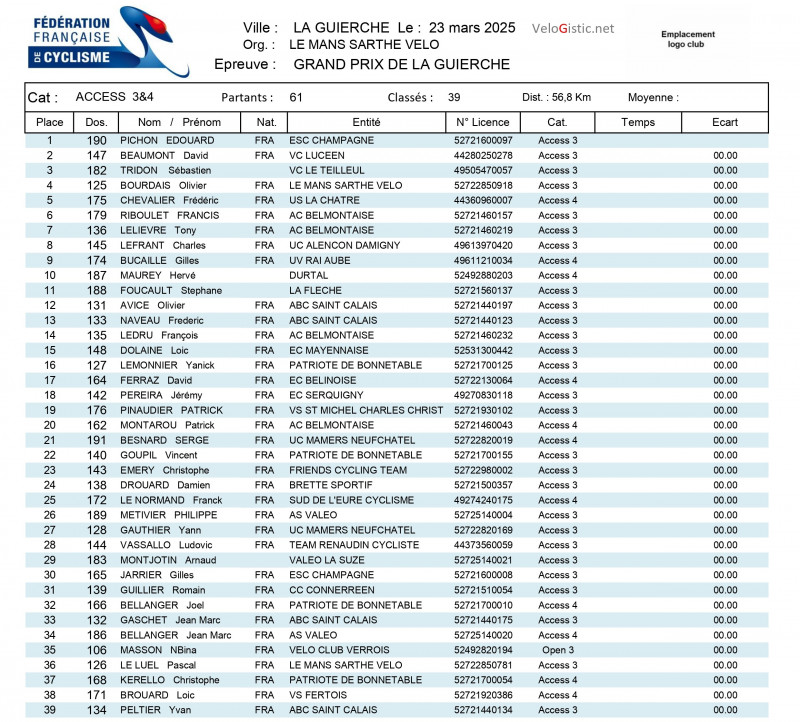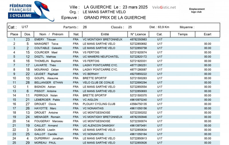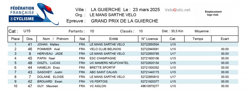 La Guierche - Open 3+Access - U15/17 - dimanche 23 mars - victoires d'Allan Perroquin (MSV), Edouard Pichon (ESCC), Mathéo Johan (MSV) et Titouan Emery (VCMB)