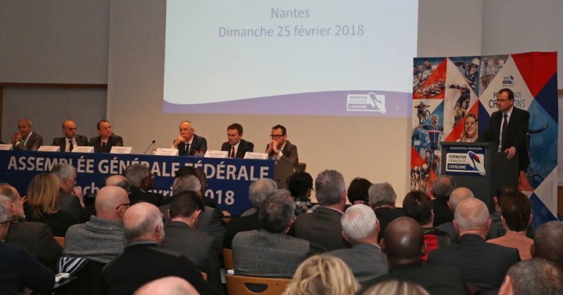 Réunie ce jour sous la présidence de Michel CALLOT, dans la cité internationale des congrès à Nantes, en présence de David LAPPARTIENT, Président de l’Union Cycliste Internationale, l’Assemblée Générale de la Fédération Française de Cyclisme a rassemblé 240 congressistes, dont 122 délégués élus (porteurs d’un total de 1.123 voix), représentatifs des associations des comités régionaux et départementaux de France métropolitaine et d’outre-mer. De mémoire de congressiste, la présence d’un Président de l’Union Cycliste Internationale constituait une première unanimement appréciée.