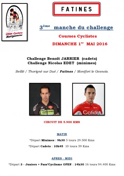 - Fatines (UCM). Circuit de 5,9km. 3ème manche du challenge Benoit Jarrier - Nicolas Edet